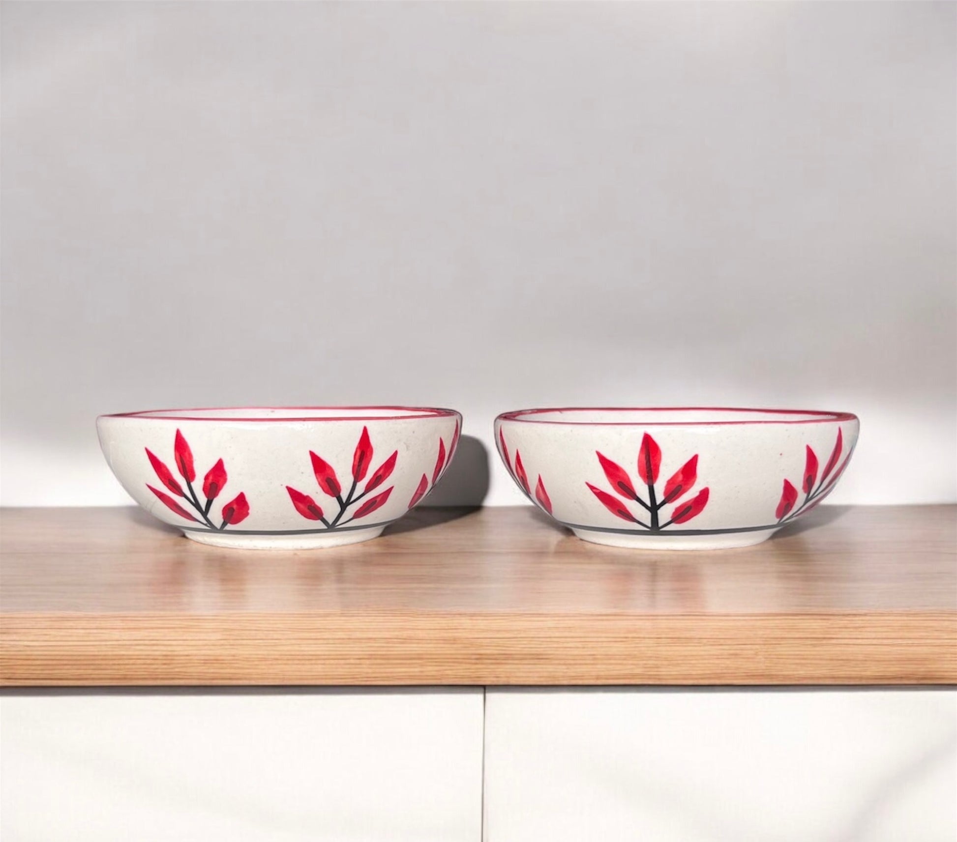 Add a touch of artistic charm to your dining experience with the SOULCRAFTZ Hand-Painted Multicolored Ceramic Floral Bowls Set. This set includes two beautifully crafted ceramic bowls, each adorned with vibrant floral designs that bring a burst of color and elegance to your table. Perfect for serving vegetables, desserts, or soups, these bowls are as functional as they are stunning.