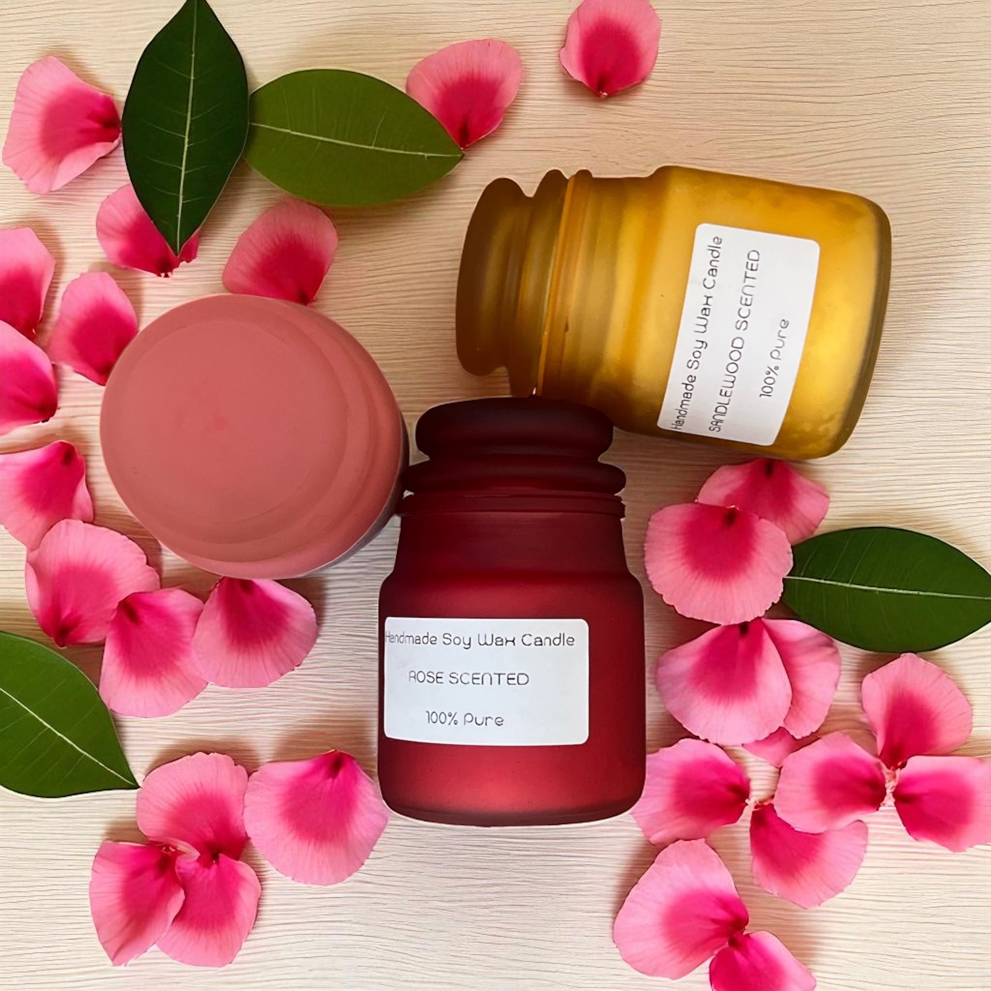 - HANDMADE CRAFTSMANSHIP: 100% pure soy wax candles handcrafted with care, featuring three distinct fragrances - Lavender, Sandalwood, and Rose