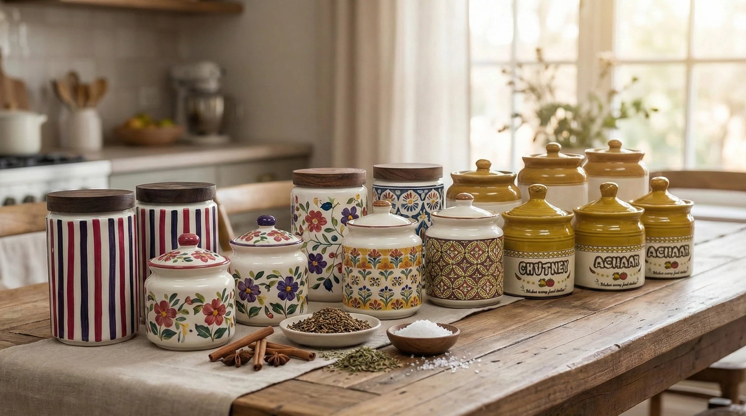 Ceramic Jars | Airtight Wooden Lid | 400ML | Set of 2 | Kitchen Storage